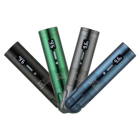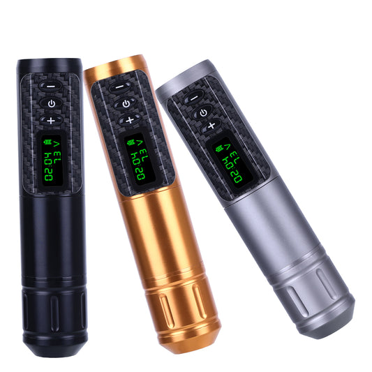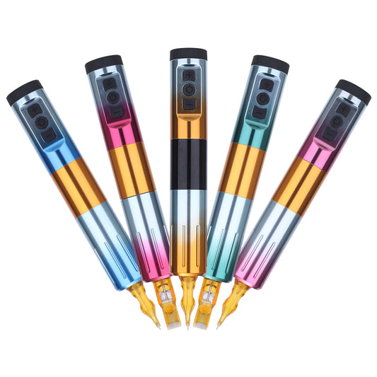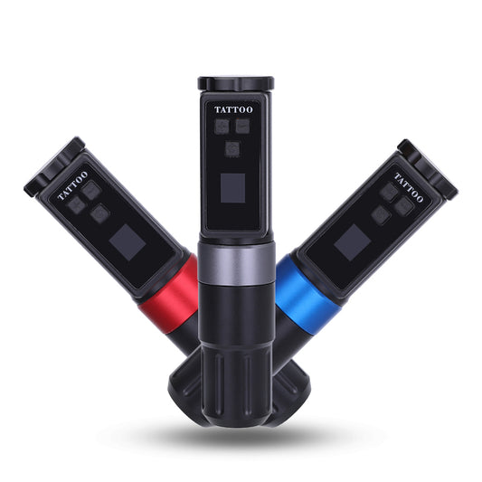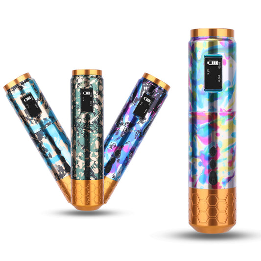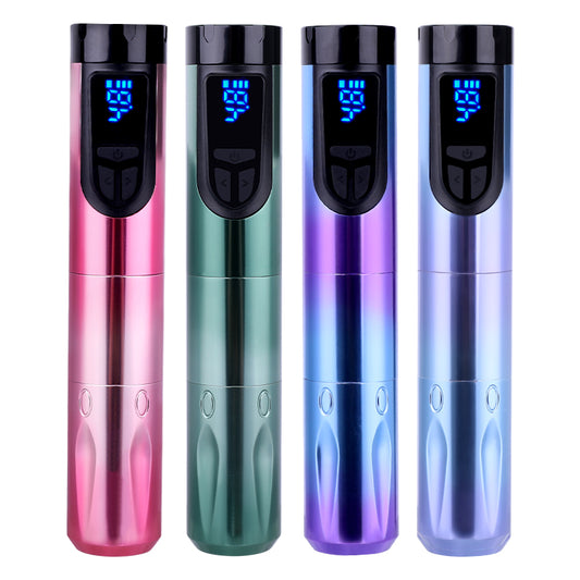 Wireless Battery Tattoo Pen Machine now is more popular. With a built-in lithium battery, the tattoo pen is light weight and very portable, digital LCD screen displays and records the working voltage and working time. It can unscrew the power part to replace the battery. Integrated tattoo machine pen can be compatible with most needle cartridges.
