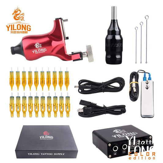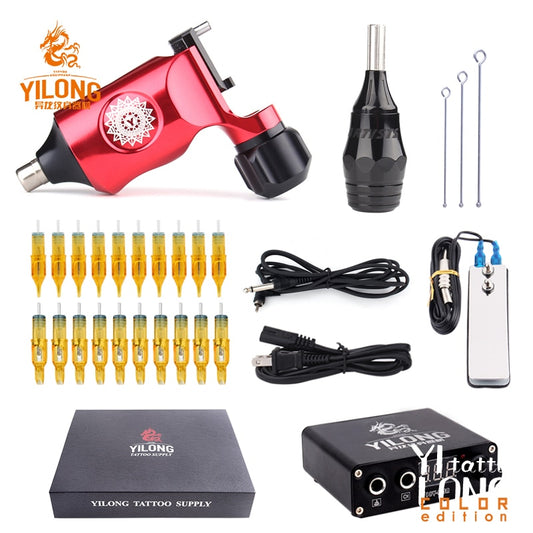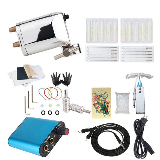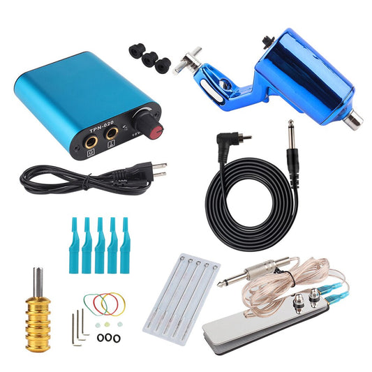 This complete tattoo kit includes rotary tattoo machine, clip cord, tattoo power supply, tattoo foot pedal, tattoo needles, and other tattoo accessories. When you have a tattoo kit, you can begin to tattoo.
