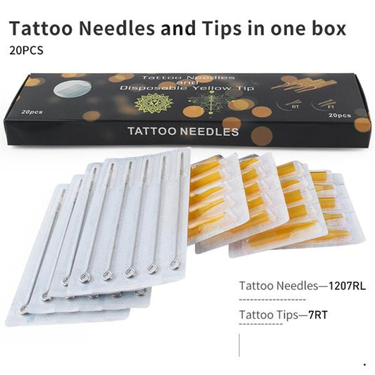 Tattoo Needles and Yellow Tips Mixed 40PCS Professional Tattoo Needle M1/RM/RL & Disposable Plastic Tattoo Tips FT/FT/RT With Box