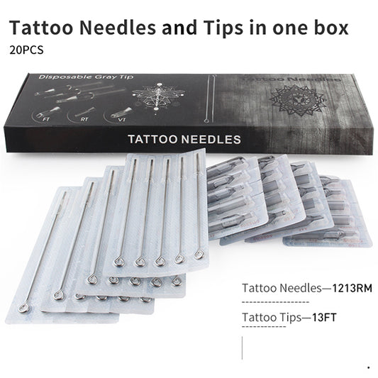 Tattoo Needles and Gray Tips Mixed 40PCS- Professional Tattoo Needle M1/RM/RL & Disposable Plastic Tattoo Tips FT/FT/RT With Box