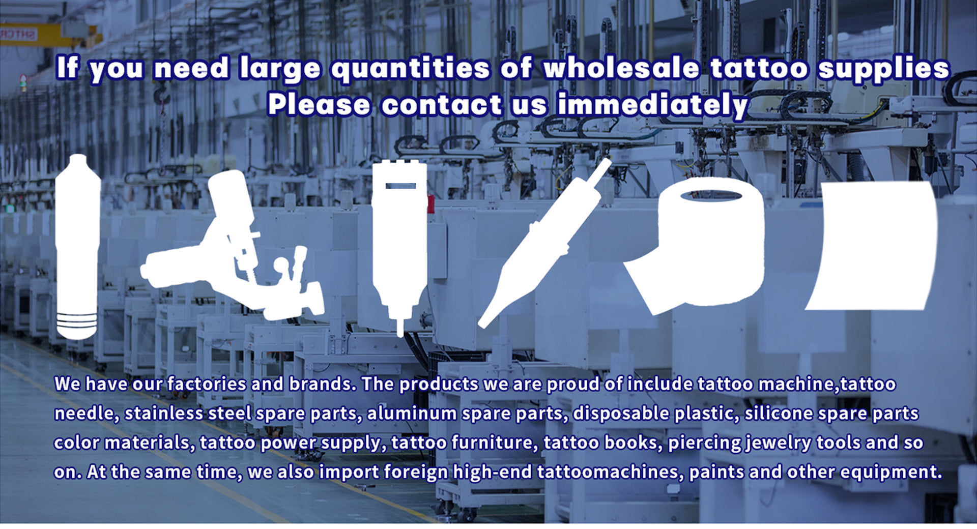 We have a full line of machines for manufacturing tattoo equipment Specialized in making tattoo machines and needles for over 20 years, we produce tattoo equipment for many suppliers around the world. We're professional tattoo supply with our own factories and brands.. We can provide OEM service, make tattoo equipment under your brand. please contact us by email.